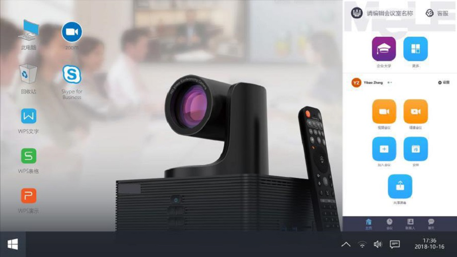 2 、独有内嵌“春源丽影SHL 4K 极清客厅电脑系统平台软件”,双 HDMI 高清输出显示设计。可以分屏幕显示共享演示文档和入会者的摄像头图像。