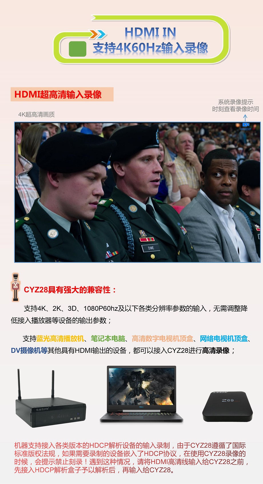 CYZ28不仅支持HDMI输入录制,同时,也支持录制本机播放的网络音视频!