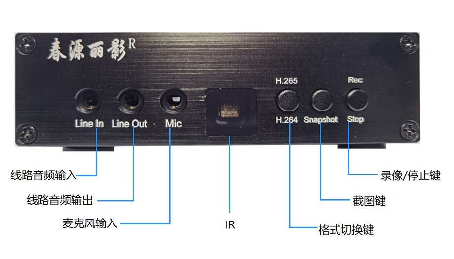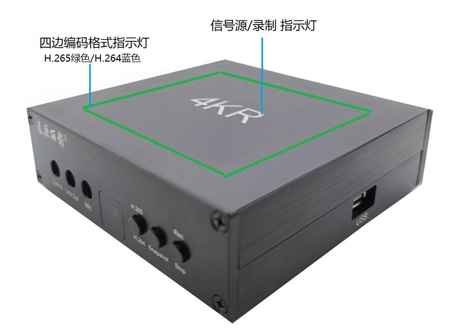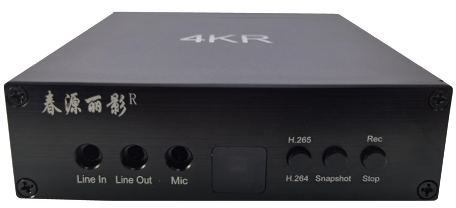 4KR-02,是深圳春源丽影电子科技有限公司最近推出的一款真正可以录制4K高清视频的高清录像机。该机支持HDMI 4K30以及以下各类参数输入录制,输入多高就录制多高的分辨率帧数。输入4K30录制后就是4K30,输入1080P60,则录制后就是1080P60。机器既有灵敏的操作按键,也随机配有遥控器。本机本身具有解码播放功能,录制后本机即可播放。支持一键高清截图。在HDMI音视频输入的同时,还可同时混入一路线路音频、一路麦克音频;还可以用耳麦同时监听音频。机器具有HDMI高清输出接口,可以外接电视机或者显示器,边看边录。录制时具有H265/H264编码以及比特率高低可选,录制后文件是MP4格式,方便编辑和播放;自带文件删除功能,无需电脑即可随意删除不想要的文件。4KR-02,是一款功能完善、操作简便、更加人性化的真正的4K高清录像机!