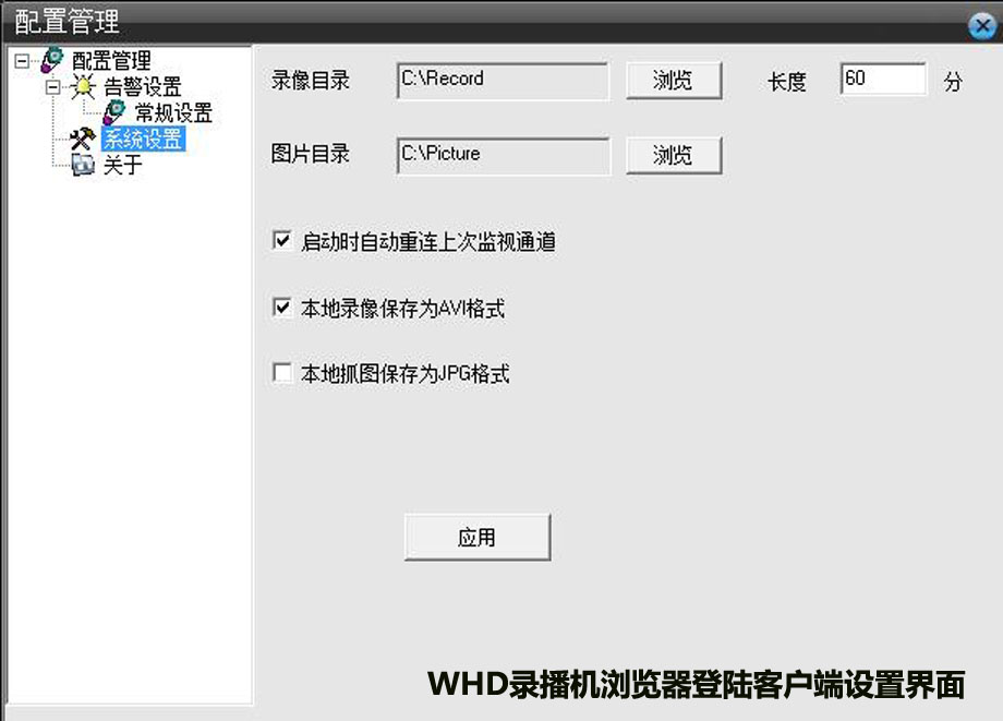 点击顶部右边的配置管理,就可以设置该电脑访问录播机时在电脑进行录制、截图的配置。