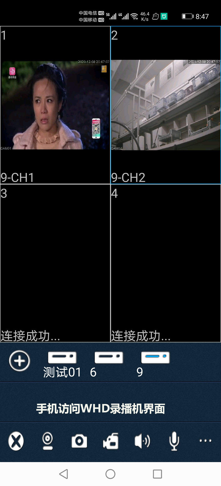 在手机上访问WHD录播机,安装客户端后用邮箱进行注册,输入账号、密码,输入录播机的ID号码,就可以登陆。登陆后就可以实现 直播、点播、语音对讲、截图、下载、点播等多种功能。