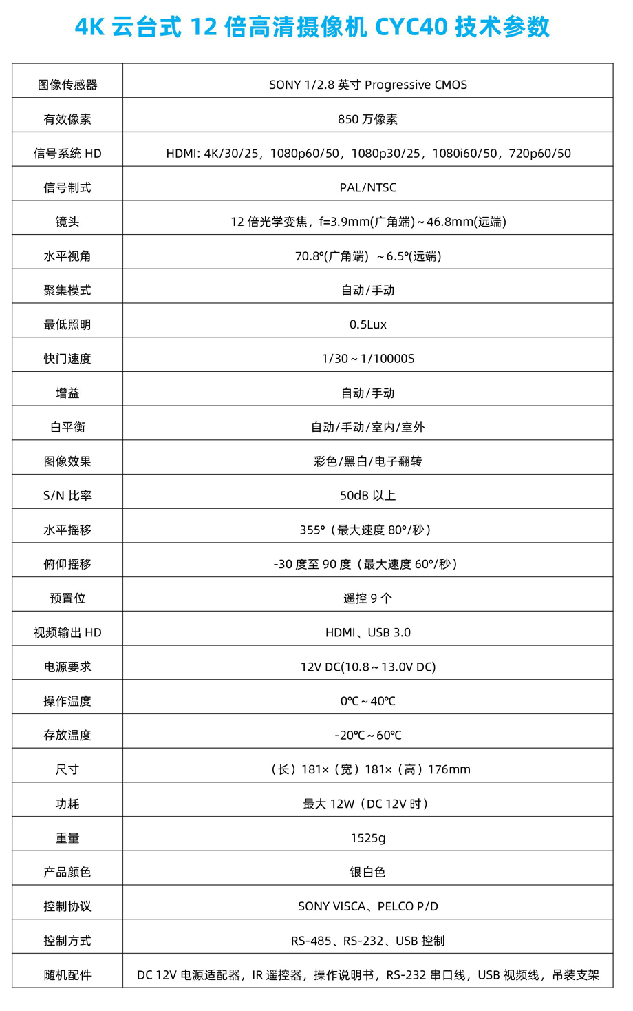 一、4K云台式12倍高清摄像机CYC40