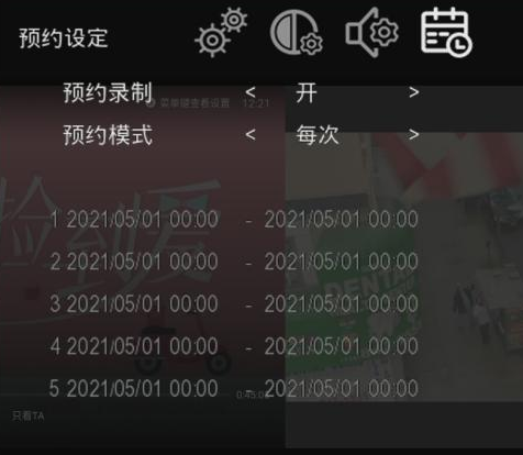 不仅支持一键开关录像,还可设置5个定时预约录像时段,可设置每次或者每天定时预约。