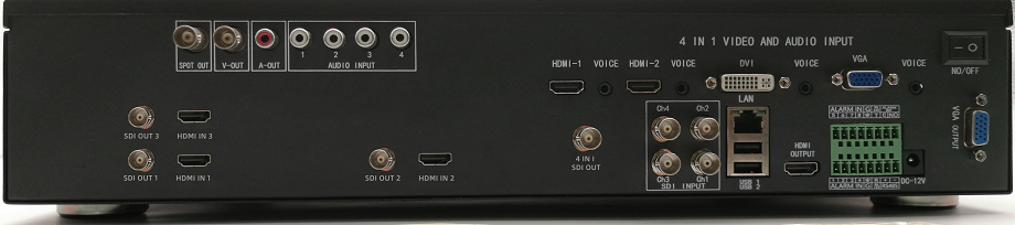 每一个通道均有一个SDI环出接口,共有4个SDI输出接口。 |