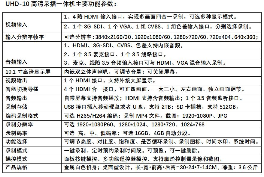 三、10.1寸屏医疗手术高清录像机春源丽影UHD-10