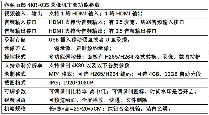春源丽影4KR-03S机型,是目前国内外少有的能支持4K高清录制的录像机。该机架构简洁,操控容易,录制画质高,截图清晰度好,尤其是价格,十分优惠。主要功能如下: