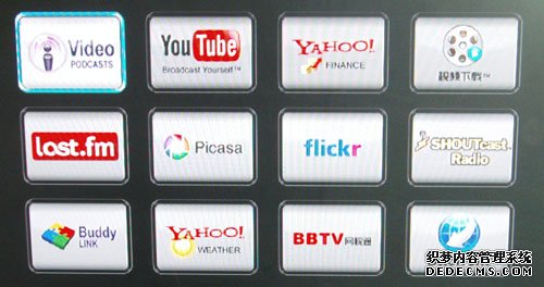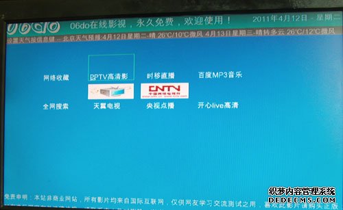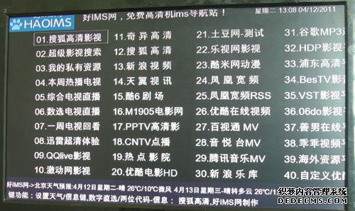 e、支持图片格式: JPG/JPEG, BMP, PNG, GIF; ![]() ![]() 高清播放画质细腻清晰,彰显高清效果。 丽影影居GL03可以内置最大2T3.5寸串口硬盘,超强的硬盘高清视频播放能力,奠定了该机为高清硬盘播放机的机皇地位。同时,独家具有内置DVD高清光驱功能,保留了传统碟机的形象,具备强大的光盘播放能力,支持一般的小蓝光盘、3D光盘、压缩D9、DVD、VCD、CD光盘播放。如果系统设定为光盘自动播放,则每次开机后首先播放光盘,可以自行设计开、关。如果没有设定自动光盘播放,可以手动光盘播放,将光盘插入光盘仓后,进入档案管理,点击光盘播放。无论播放视频还是图片,其高清效果令人如同置身立体影院之中,倍感享受! (四)、网络多媒体功能 丽影影居GL03强大的网络功能,改写了高清多媒体播放器不能上网的历史。也解决了高清播放器片源之前只能单纯依赖下载、购买、拷贝复制、外借的弊端。只要家庭有网络,从此不用愁资源! 1、网络连接 要利用GL03的网络功能,家庭要具备宽带网络环境,要求最低2兆稳定的网速。通过路由器连接网络后,进入系统设置设置网络连接。机器支持有线、无线、PPPOE拨号上网多种方式上网。 ![]() ![]() ![]() ![]() 设置好网络连接后,点击桌面上的网络多媒体图标(地球)就进入了丰富多彩的网络界面。新购买的机器,要实现如此多的功能,一般需要预先进行功能激活,激活后可以实现国内丰富多彩的视频点播和电视直播功能。 2、海量网络功能 与时下有些播放器具备的网络功能相比,丽影影居GL03的网络功能强大无比。从功能图就可以看出近20项网络端口,造就了该机的全媒体播放器地位。 ![]() ![]() 国际视讯、youtube网站、股票信息、BT下载、谷歌在线交流、网络邮箱、LOST信息、图片搜索、网络电台、RSS国内视频点播、电视直播、国际天气预报、支持键盘鼠标的谷歌搜索引擎、百度搜索等。如此强大的网络功能,即使即将上市的1185方案网络功能也不可及。 ![]() ![]() 近千个海外视频端口 丰富多彩 ![]() ![]() 初步统计,目前可以点播和接收到的国际电影网站、电视台不下近千个频道。只要网速支持并懂英语,可以尽情满足欣赏需要。而在海外经典的youtube网站则大饱眼福了。 股票信息 谷歌浏览器该机可以收听全球广播电台,可以随时浏览全世界任何地市级城市天气预报。而下载功能,则可以方便的下载各类视频资源。而只要注册谷歌账号,则可以任意登陆谷歌邮箱、谷歌聊天工具,进行生动活泼的在线交流。在谷歌搜索引擎,不仅支持遥控器操作,也支持有线、无线键盘鼠标操作,输入汉语拼音或者英语字母,可以方便的搜索各类信息,打开网站浏览网页新闻。新浪新闻、RSS新闻很方便欣赏 3、国内网络视频功能 作为国内用户,丰富的视频网站和电视同步直播才是心仪的享受。激活RSS视频端口后,将有六大端口进入。 ![]() 分别是HDP fas在线、好IMS、VST影视平台、BesTV影视平台、O6do影视平台、善男影视平台等六大网络视频端口,点击每个端口,则有丰富的在线视频、电视直播可以欣赏。可以点播的国内视频网站有20多个,音乐平台十几个,视频搜索引擎四五个,电视直播端口十多个;可以点播近百万部影视剧、千万首MP3、MTV歌曲、同步电视直播300多个频道。基本囊括了国内主流网站上的所有视频和央视、各省市、主要地区的主要电视直播频道。在2兆稳定网速情况下,播放流畅清晰,分辨率大多数超过了DVD、有线电视的效果,而高清频道则达到了机顶盒的效果。基本可以取代有线电视、数字机顶盒了,成为家庭欣赏影视、电视节目最为理想的设备。 HDP fas在线FASHDP在线,最方便的点播、直播、和搜索引擎端口。电视直播有200多个频道。而搜索引擎可以方便的搜索出你想看的所有视频,便捷灵活,而收藏功能,则更加方便。 ![]() HAO ims 端口是目前国内视频导航最为经典的入口。集中了四十多个音视频资源。基本没有找不到的电影、电视剧、音乐,电视直播有近十个入口300多个频道。 VST影视平台、BESTV影音平台、O6do影视平台、善男在线影视平台集中了80多个影视、直播端口。 众多经典入口,洋洋洒洒,汇聚成了一个浩瀚的影视宝库。只要网络稳定,80%以上的视频资源都可以流畅的打开播放。 VST在线 BES TV在线 O6do在线 善男在线