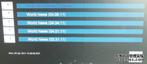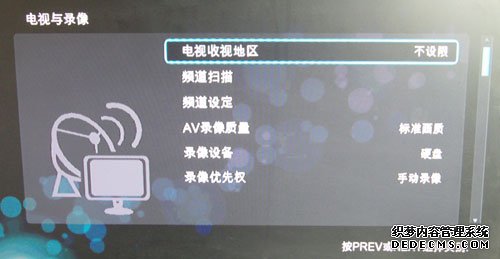 ![]() ![]() ![]() DMB-HT制式高清电视,无需安装数字机顶盒,一样可以免费欣赏高清电视,达到了1080P的高清效果,图像逼真,清晰流畅,让我们体验到了高科技给我们带来的享受! (二)、AV输入(录像功能): 本机具有硬盘录像功能。既可以内置硬盘录像,也可外挂硬盘录像。GL03录像改良版固件录像分辨率达到了1080I的高清效果,基本不衰减信号,侧重专业录像使用。GL03WBS固件录像分辨率也达到了640P的分辨率,基本能满足随时录制电视节目、机顶盒视频、以及影碟机、播放器、摄像头等各类AV输入的设备录像。尤其是在可以接收DMB-HT地面数字高清电视的地区,录制更加方便。 如果进行内置硬盘录像,必须使用本机对硬盘进行格式化分区。打开右侧的硬盘开舱口,将3.5寸串口硬盘平行插入到底,剩余2公分左右时,关闭硬盘仓,将硬盘推进。然后点击图标系统设定,进入系统,选择格式化,提示输入密码,原始密码为 0 0 0 0(4个零);然后点击确定,根据出现的提示,点击确定,默认缓存容量,点击前进,点击格式化,进度圈开始转动,一分钟左右,格式化完成,点击确定重启机器。(机器开机时有信息声音为正常)。开机后,有硬盘搜索信号、光驱搜索信号,待信号出现后为启动完成。 ![]() 录像之前,进入系统设定,选择电视与录像,可以调整录像设备、录像画质、以及手动、自动录像以及地面数字电视频道设定。如果内置硬盘录像,则选择硬盘,如果外挂硬盘录像,则选择USB。为了确保录像满屏和清晰度,原始播放设备要将影像比例调整为4:3,GL-03的影像比例也调整为4:3,有的播放设备可以通过遥控器的影像放大键调整为满屏。 ![]() ![]() 将播放设备通过AV线连接到GL-03的输入接口,点击电视界面AV输入,则显示输入的播放机播放界面。按遥控器上的录像键,可以随时录像。停止录像时,按停止键。按GL-03录像键后,在电视机左上角顶部会有一个红色的小圆球闪动,在GL-03的LED面板,也有一个很小的REC灯闪亮。停止录像时,在电视机左上角会出现一个方形的红灯几秒钟,同时GL-03的LED面板上的REC灯关闭。欣赏录像后的视频,可以进入档案管理,找到硬盘或者USB,选择REC文件夹,录制的视频资源则根据时间命名为文件夹,点击即可欣赏。 ![]() ![]() (三)、硬盘、光盘电影、图片、音乐播放 点击电影图标,则显示出内置或者外挂硬盘的所有电影目录。也可进入档案管理图标,选择硬盘或者USB或者光盘,播放视频文件。 ![]() ![]()