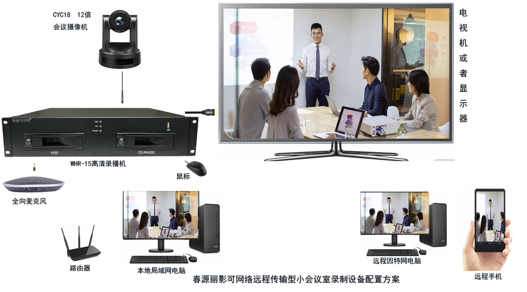 小型会议室录像,使用春源丽影WHR-15录像机,可以实现同步网络远程直播功能。