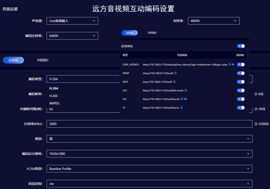 本机自动生成推流地址,在网络远程端,支持本款机型拉流同步直播、支持解码器拉流直播、支持电脑浏览器拉流直播、支持远程电脑、手机客户端拉流直播。