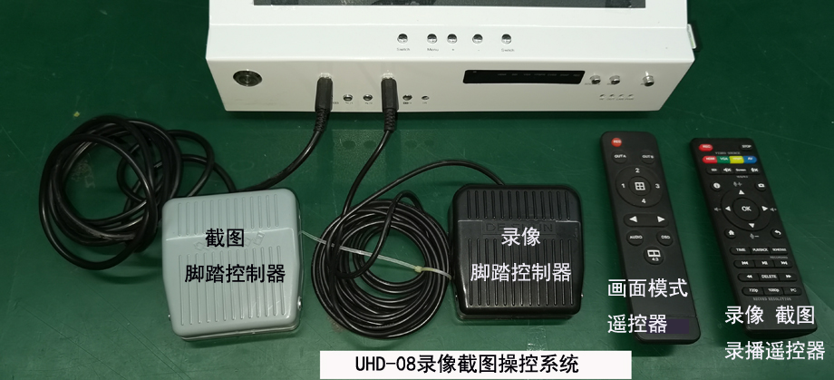 支持面板按键、遥控器、脚踏控制器三种操控模式。支持接口类型选择、截图、录制按键调整。支持脚踏截图、脚踏录像操控。支持遥控器全功能接口选择、截图、录制、回放、麦克、线路音量调整以及系统设置。