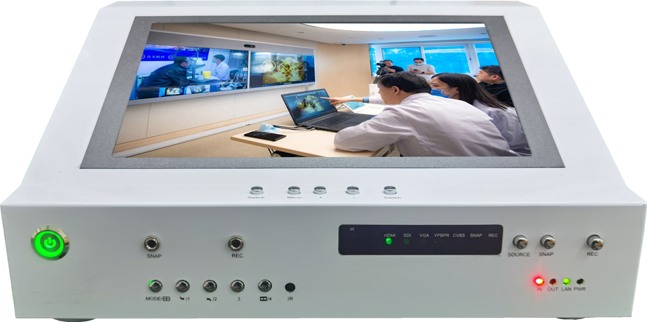 4个HDMI输入接口,同时输入时,支持多画面画中画显示和录制,支持任意输入路数多画面或者单画面显示和录制。医疗手术录像或者示教时,可以同时将内窥镜、术野相机、全景相机或者电脑PPT同时输入给HDMI接口,进行多画面录制;HDMI和他输入接口,支持每次选择一个类型录制。录制视频会议或者本地会议时,根据会议终端设备和会议摄像机输出接口,选择对应的输入接口。