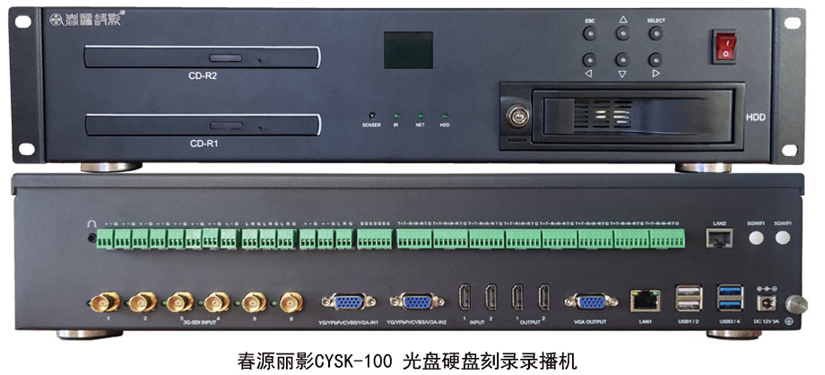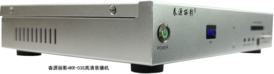 春源丽影4KR-03S,支持一路HDMI 输入4K30 高清录制,支持插入移动硬盘、U盘录制。本身有操控按键,配有多功能遥控器。