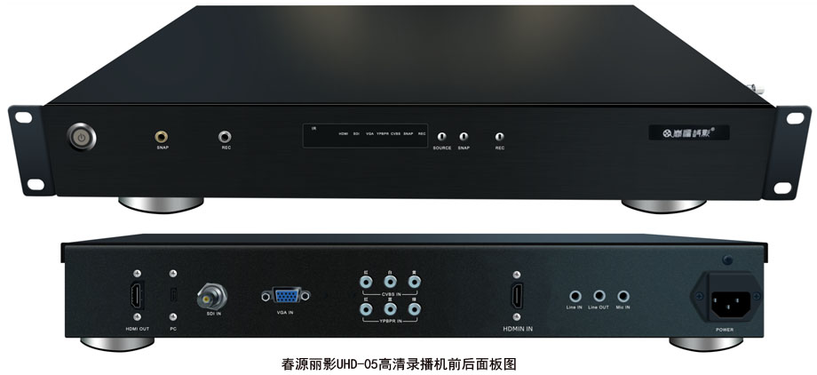 春源丽影UHD-10机型,本身带有10.1寸高清屏,支持HDMI、SDI、VGA、AV、色差多种接口输入1080P60高清录制。支持插入移动硬盘、U盘、SD卡录制。本身有操控按键,也支持脚踏控制器高清录制和截图,配有多功能遥控器。