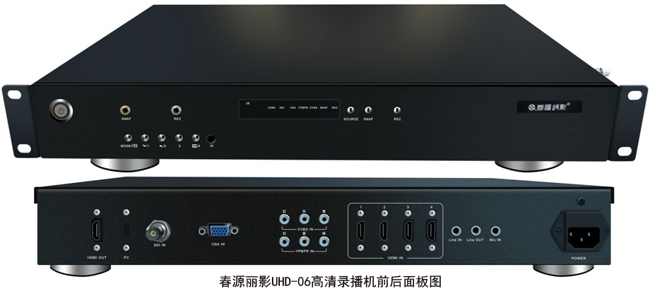 春源丽影UHD-06,支持移动硬盘、SD卡录像,支持按键操控,配有多功能遥控器。