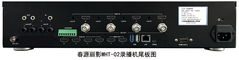 WHT-02产品,具有8个HDMI输入接口。其中第5-8输入接口,不仅都支持HDMI含有音频输入录制,还分别有一个3.5音频输入接口,4个接口均可以实现分别混音、配音录制。第1-4个HDMI输入接口,每一路HDMI输入都支持内嵌音频录制。该机还有2个3.5、2个6.5音频输入接口,可以给每一路视频输入配音。