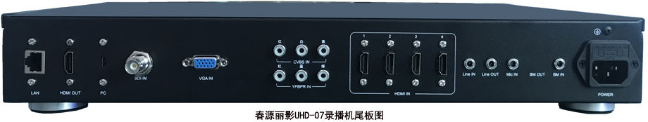 具有1-4个HDMI输入接口,HDMI输入支持内嵌音频,还有2个3.5音频输入接口,可以实现混音、配音录制。