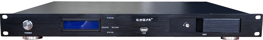 其录像存储设有 1 个 SATA 抽屉式硬盘位,可内置 16T 硬盘,能与 USB 外接移动硬盘同步录播,录制满自动覆盖。录制格式为 H264 编码、MP4 格式,可选 2 路录制为 4K30,其他录制分辨率 1080P30hz 及以下。