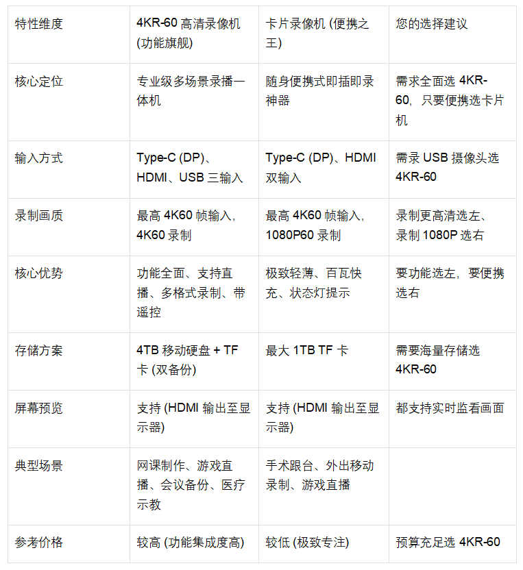 适合人群:医生(手术录制)、经常出差的商务人士、需要外出录制演示的教师、追求极简生活的用户。 三、 选购指南与总结