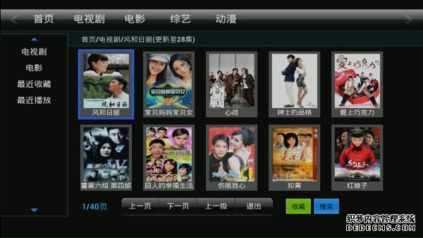 ![]() ![]() 在丽影588B首页除了嵌入了上述720P高清网站,还有一个“好看100”端口,这个端口与云视听、高清直播三个端口共同成为“春源制造”,因为这三个端口只有春源丽影的588B电视上网机才具备,其他类似如安卓4.0系统的机器是没有的!凡是了解过春源丽影788C的用户(包括688、788A、788B),都知道有个RSS视频点播系统,这个系统久经考验,非常稳定,并且资源丰富,操作方便。而“好看100”就是RSS系统的精华,系统内荟萃了目前正在热门流行的以及经典的电视剧、电影、综艺和动漫视频。该系统的视频播放,清晰度也达到了640P以上,需要网速仅需2兆,浏览查找也很方便,具有搜索、收藏、记忆功能。该部分支持遥控器操作,可以快进、快退、暂停播放。 ![]()