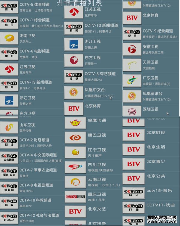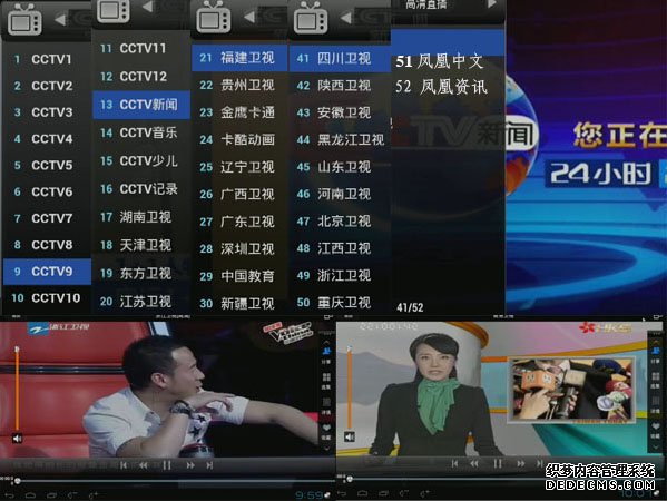 ![]() 手机电视端口,该端口是基于安卓系统下,手机、平板电脑专用的直播入口,该功能开发进入丽影588B后,进行了清晰度解析和网速缓释,因此,可以满足欣赏故事性、新闻性、娱乐性电视节目。手机电视端口荟萃了300多套电视直播频道,以主流省市卫视频道、特殊地方频道、主流综艺频道、热门电影频道为主,林林总总,精彩荟萃。虽然清晰度一般,但是,欣赏性很强。 丽影588B丰富的主板系统中,嵌入了安卓4.0C+系统,因此,支持下载几十万款APK功能固件,而电视直播固件就有近十款,除了上述的手机电视固件外,还有CNTV、开讯视频、微看电视等电视直播APK,可以很方便的下载和安装。国外客户还可下载适合本地播放的电视直播固件安装。 ![]()