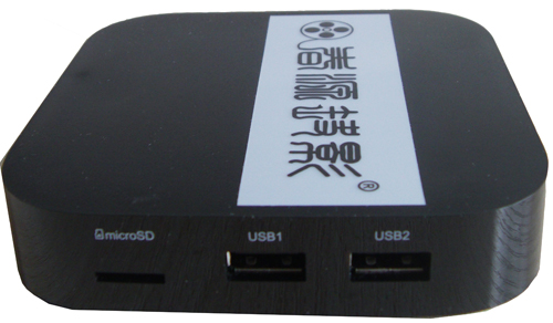 模具右侧,有TF卡插槽、双USB接口,支持外接播放外置存储的各类视讯资料、支持连接无线、有线键鼠。