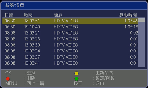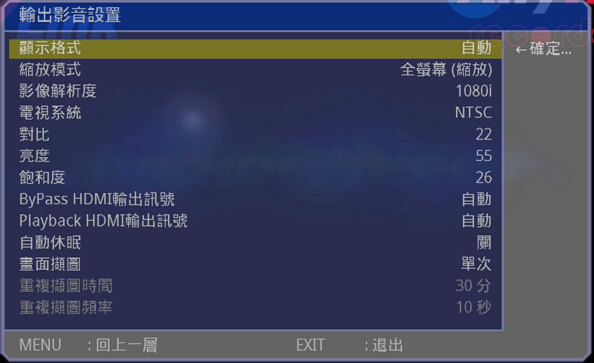 10、高清截图功能 在播放或者录制过程中,通过遥控器按键,可以便捷的进行截取图片以作备用。 11、录制分辨率调整功能 可以根据个人需要,灵活调整录制画质,有超高、高、细致、标准、普通五项选择。画质越高,录制视频越清晰,占用的空间也越大。 12、丰富的系统设置功能 在系统设置界面,可以便捷的设置输入音视频、输出音视频参数,如语言、时间、画质调整、录影频率、音频源调整、录影音量、是否循环录像、单键录像时间、自动唤醒、显示格式、播放模式、影像系统、电视规格、对比度、亮度、饱和度、以及HDMI常规输出以及PASS输出调整、自动待机、抓屏等丰富的功能。