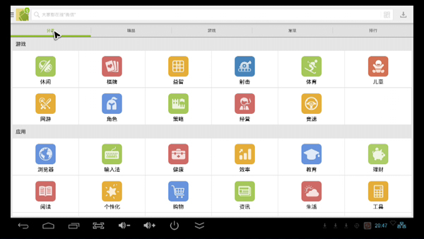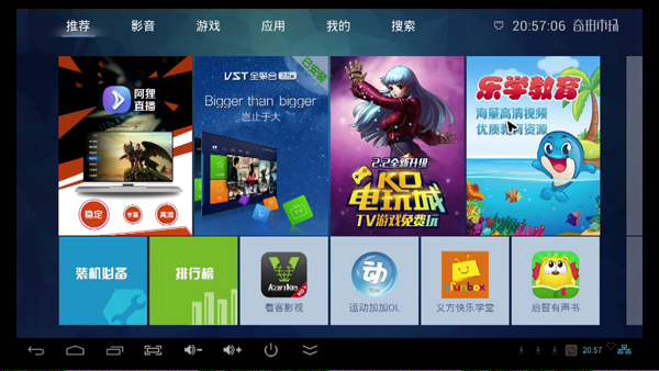 (二)、超强软件下载、安装、卸载功能 588F5B由于硬件配置高,系统先进,运行速度平稳极速,网络反映闪速,因此,支持安装所有的安卓系统的APK软件。以目前国内的安卓市场、安智市场、奇珀市场、爱家市场、沙发管家以及百度搜索到的APK软件均可以随意下载安装,只要你需要的,就可以安装使用。国外客户可以根据自己的需要,下载安装当地流行支持的安卓APK软件。由于机器FLS内存高,可以容下主流常用的丰富的软件;不常用的软件,可以便捷的卸载删除。丰富的软件安装功能,导致该机实现了强悍的电脑功能,成为名副其实的一款客厅微电脑。与目前广电严管下的网络播放器给屏蔽了APK安装管理器、文件浏览器相比,具有本质的区别。