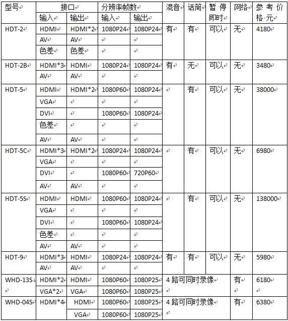 为了方便客户根据自家的视频会议终端设备的情况,科学便利的选择硬盘录像机机型,下面将目前市面上主推的春源丽影视频会议用硬盘录像机型号以及主要参数、参考价格列表公布如下: