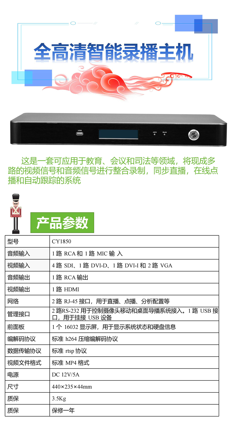 3GSDI VGA DVI8路输入高清导播录播机CY1850方案