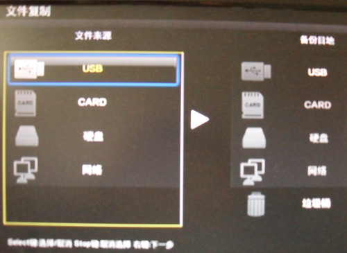 可以脱离电脑,编辑硬盘资料,实现内置外挂的存储之间,方便快速的拷贝、剪切、重命名等资料编辑和操作。进入“硬盘、USB和网络文件复制”菜单后,显示出源文件地址,再找到目的地址。在要复制的具体文件处,按遥控器的选择键,文件左边显示被打钩,按右键,进入目的地址。按确定键,建立文件夹,显示键盘界面。可以选择中文、英文、大小写等功能。通过拼音打字给文件夹命名,点确定。如果以前有文件夹,也可以不建立文件夹,直接进入以前的文件夹就可以。确定好文件夹后,按右键,显示“复制、移动、返回”提示。移动就是剪切。点击复制或移动后,显示进度条和形象资料转移动漫画面开始执行。对存储媒体里面的资料进行删除,则更加简单。选择要删除的文件,按编辑键,出现“删除、重命名、返回”提示,根据你的需要操作。删除的速度也是很快的。