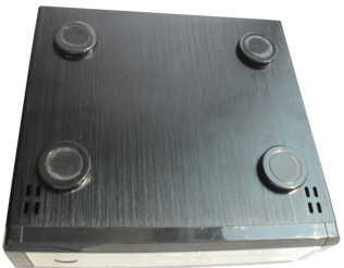 机器的底部前两侧,各有一组四口进出风口,为内置的静音风扇提供了良好的冷风循环系统,也是该机的独创。通体铝合金,静音风扇,循环风口,在硬件上保证了机器的理想温控。而四角的减震塑料脚垫,则保证了安装超大硬盘高速运转时的低噪无声。