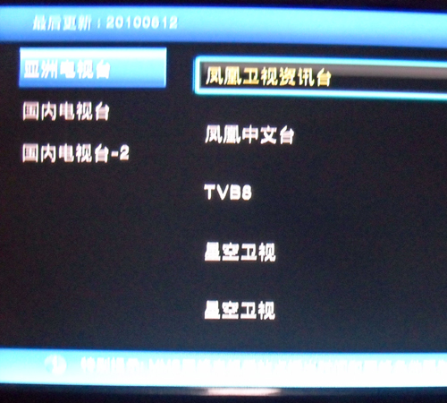 电视频道,机器出厂时,已经在系统内部嵌入了不少频道,机器上市后,春源科技又提供了可下载频道固件,通过下载固件用U盘插入可收看的频道又大大增加(简称U盘频道)。目前的具体频道统计如下。