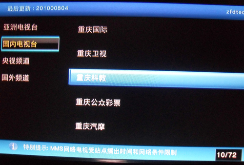 春源丽影GQ-01进入电视频道很简洁。打开MMS网络电视后,是电视频道的分类列表。