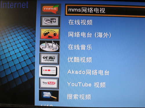 GQ-01丰富的网络功能,导致该机也叫“电视上网机”。进入网络服务器菜单,众多网络功能都表现出来。