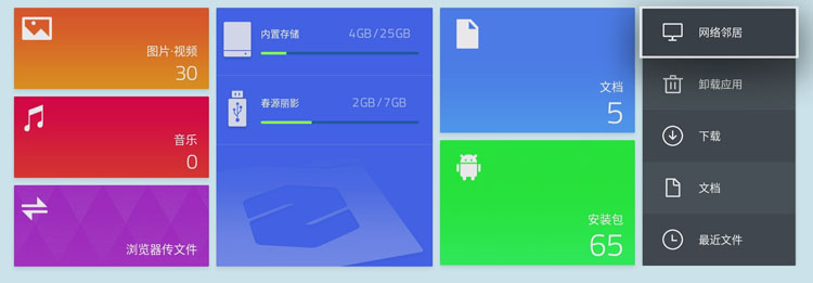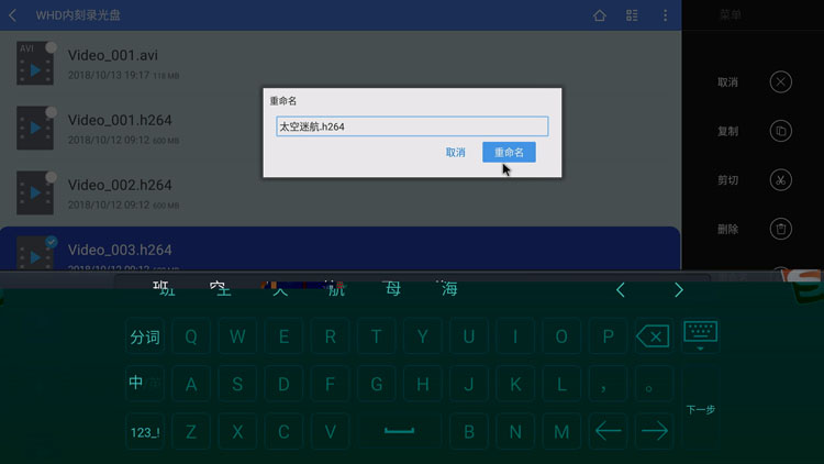 在应用中心安装了功能丰富的文件管理器,插入的U盘或者硬盘后,不仅可以像电脑一样浏览、播放里面的各种视频、音乐、图片,还可以随意对硬盘里的文件进行中文重命名、复制、粘贴、剪切、删除等操作,无需电脑即可进行编辑工作,方便的很。