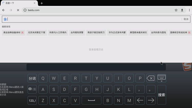 FZ69盒子已经达到了安卓平板电脑的高配功能,支持有线或者无线鼠标操作。打开浏览器,国外客户可以直接登陆谷歌浏览器,国内客户既可以下载安装自己常用的浏览器使用,也可修改谷歌浏览器为百度浏览器,可以如电脑一样进行搜索、查询、或者直接打开新闻资讯网站、视频网站,直接在线欣赏和阅读。