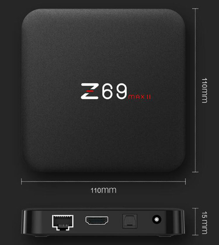 FZ69盒子,采用优质航空防辐射塑胶材质制作,正方造型,黝黑色调,小巧玲珑,迷你可爱!整机边长只有11厘米,厚度1.5厘米,整机净重 180克。