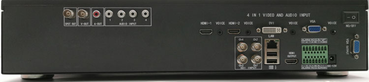 每一路VGA视频输入,都匹配有1个莲花模拟音频输入接口,与视频输入一起实现音视频同步录像。