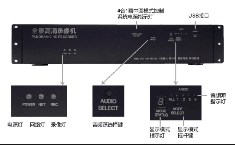 全景高清录播机(全景录像机),由深圳春源丽影电子科技有限公司于近日推出,该机具备的可以将多达四路HDMI(DVI、VGA)输入的高清音视频信号录制为一个音视频文件的功能,实现了全景音视频采集和全景录制的效果,全方位立体化整体再现了现场实况,在本地会议录像、视频会议录像、法庭审讯录像、大型集会录像、宽阔场景录像、医疗内窥腹腔镜手术以及手术教学录像、培训讲座录像等领域具有重要的实用意义。