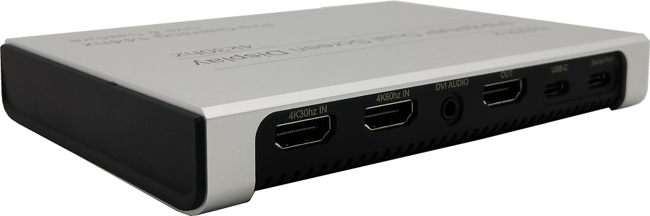 HC-03支持两路HDMI输入的视频画中画同时录制!两路输入的视频,可以录制为一个文件。这个功能对于录制数字机顶盒或者录制蓝光机的个人用户一般意义不大,但是,在会议室录像的时候就可以同时将两个摄像头同时录制为一个文件,回放的时候,可以看到会场全局的实况,因此,称这款采集卡为全景采集卡!两个信号的显示画面,可以通过随机送的遥控器进行随意调整,可以为上下、左右、一大一小或者单屏全景格式。如果输入的是一路HDMI信号,则调整为单画面全屏显示,就录制为一个独立的画面的音视频文件。
