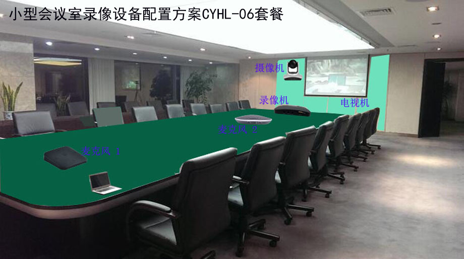 该套餐适合50平米以及以下面积的会议室使用。会议室布局包括了圆桌式、长桌式、教室式等式样。对这种小规模的会议录像,有多种设备套餐,根据单位具体需要灵活选择,深圳春源丽影电子科技有限公司研发的CYHL-06套餐,是比较经济实惠,操作简便的录像方案,具体需要的设备如下: