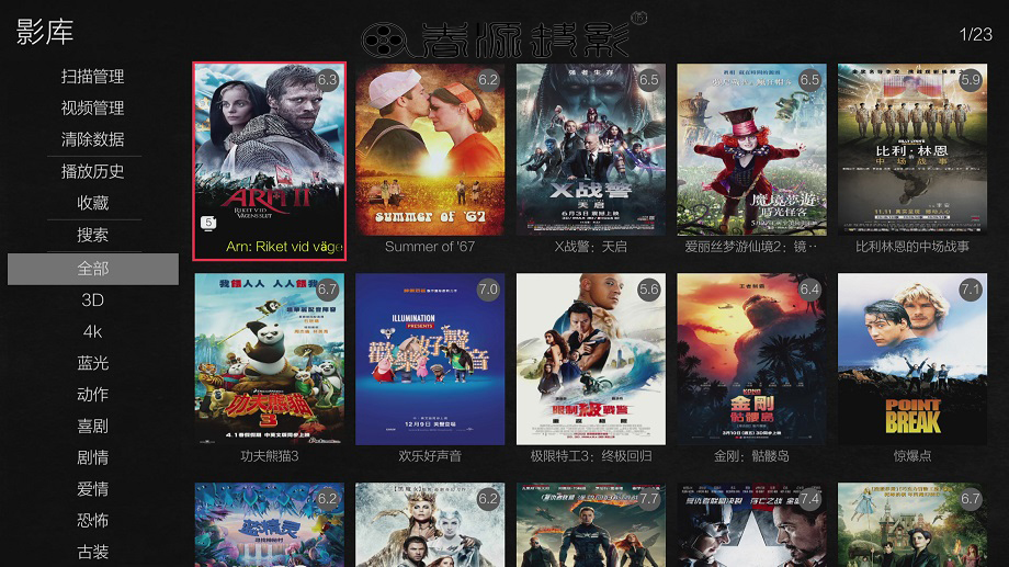 海报墙左侧是影片的自动分类,囊括了所有的影片类别。