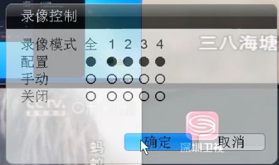 录像:鼠标点击右键,可以看到快捷操作菜单,点击录像控制,在配置处,将第一个圆圈点黑,点击下面的确定,就开始录像了。录像时,窗口的左下角有一个显示正在录像的小长方形磁盘图标,同时,前面板的录像指示灯会闪烁。