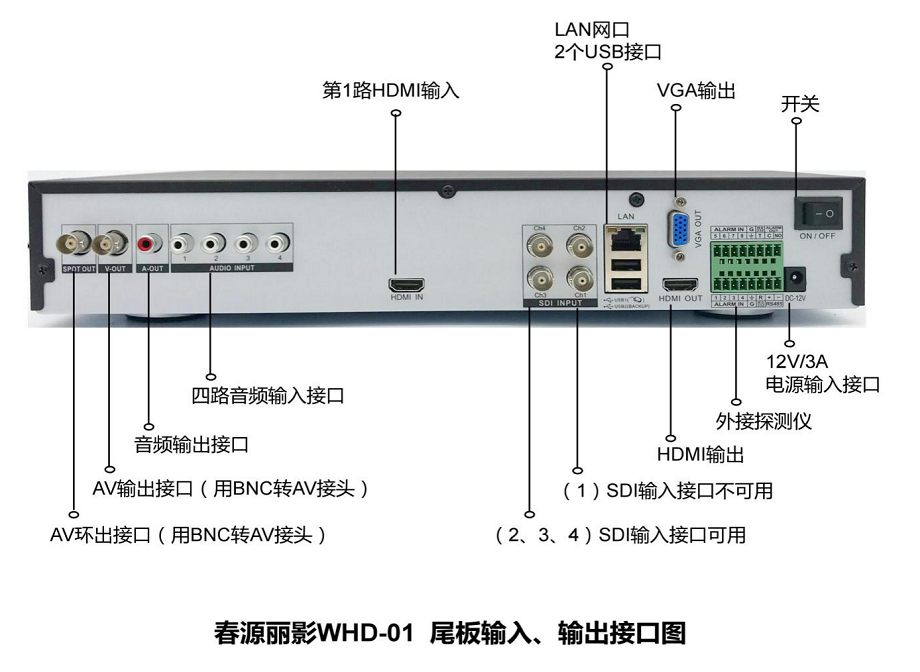 WHD-01,也可用于只有一台会议摄像机的小型本地会议室录像。还同时支持接入3路SDI摄像机,4路输入同时录制。
