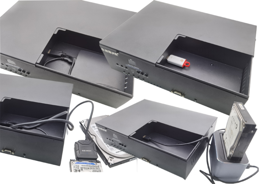 HDT105通过硬盘仓的USB接口,可以插入移动硬盘、U盘、SATA转硬盘芯、3.5寸硬盘座进行录像,最大支持到6TB。NTFS格式,每录制16GB、3-4小时左右自动分段;FAT32格式,每录制4GB停止录像。