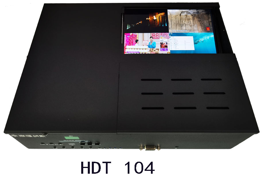 HDT104全景会议录播机,带有7寸高清显示屏,无需外接电视机也可使用。具有4个HDMI输入接口,可以根据需要接入会议高清摄像机数量。可以一键设置多画面显示模式,显示什么画面,就录制为什么画面,是理想的全景录播机。支持录制1080P60hz的高清视频。还具有麦克和线路输入接口,支持音视频混音录制。具有内置硬盘仓,可以有效保障硬盘的安全和长时间连续录像使用。机器具有简洁的操作按键,配有功能全面的遥控器。该机还具有网络推流直播功能。