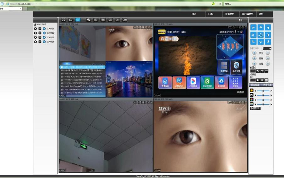 当数字物理信号输入与网络IPC混合输入时,可以显示为16/8/4/1画面模式。每个画面均可以一键全屏。