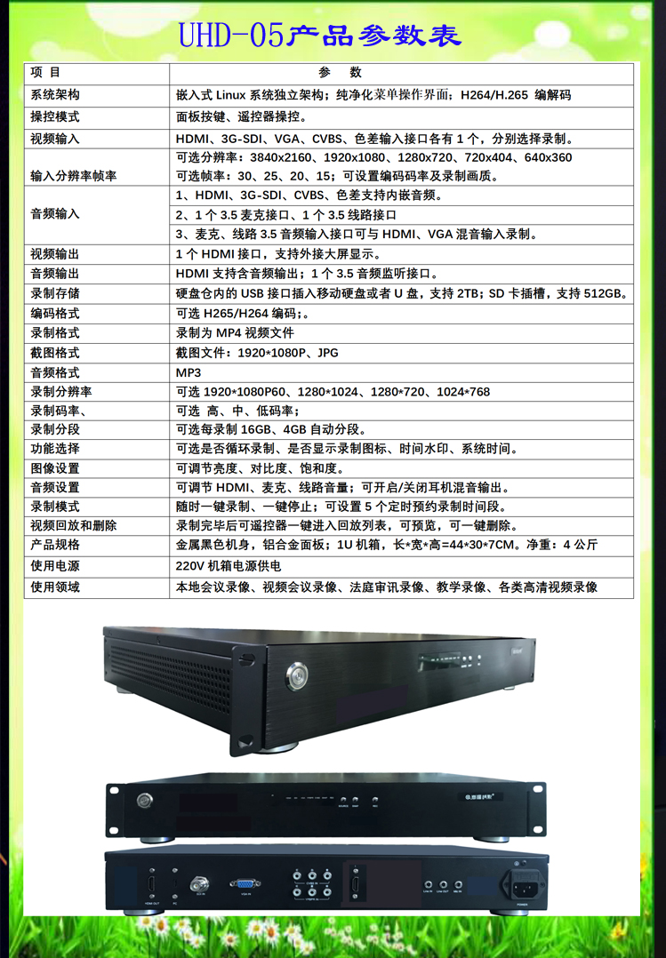 5机位简易实惠型会议高清录像机UHD-05图解