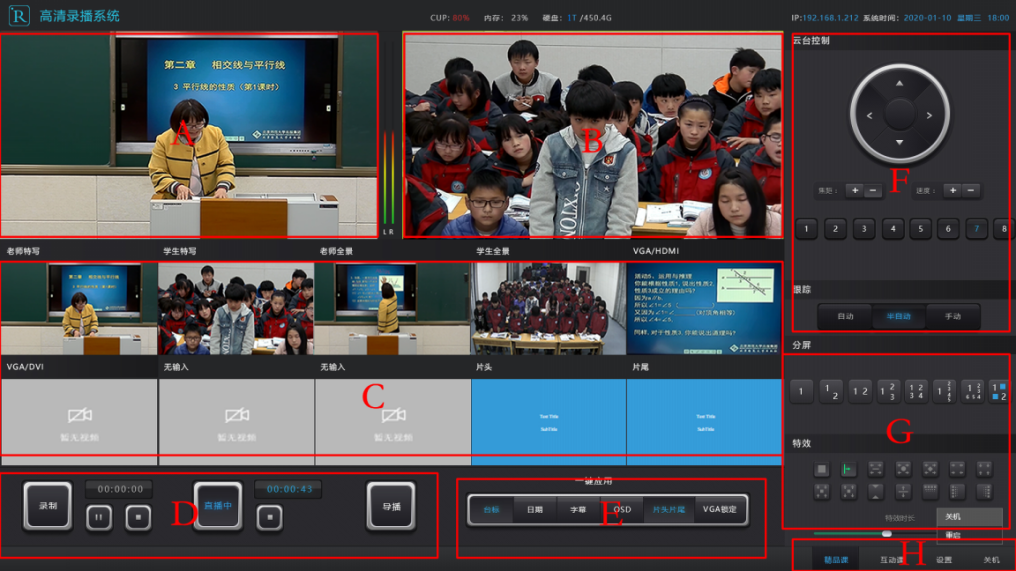 课堂录制:支持高清视频录制和直播,适用于课堂教学的全程记录,便于学生课后复习和教师教学反思。